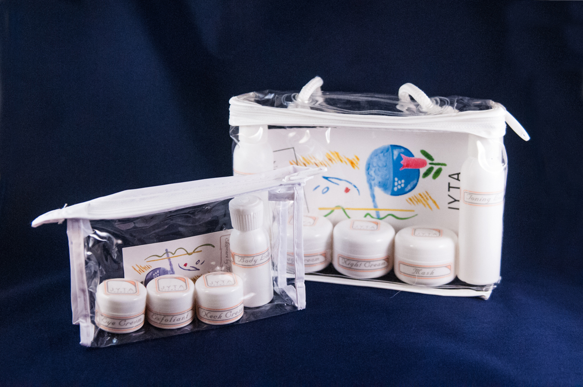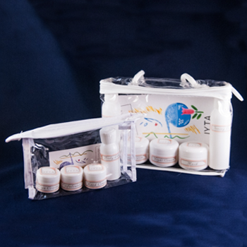 TRAVEL BAG PACKAGE "For Female; Male & Teen-agers" (Standard Travel Bags is filled with 9 different JYTA Skin Care Products) Your "JYTA Travel Bag" will & can be customized for your individual skin-care needs ! The Large Travel Bag entails: Left to right: